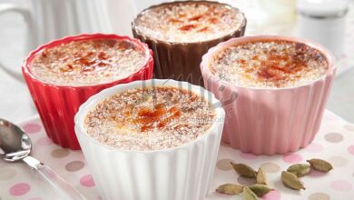 مقادير الوصفة طريقة التحضير 11. ثبتي الرف الشبكي في وسط الفرن. سخني الفرن إلى درجة حرارة ١٥٠م.2 أحضري ٤ أطباق…