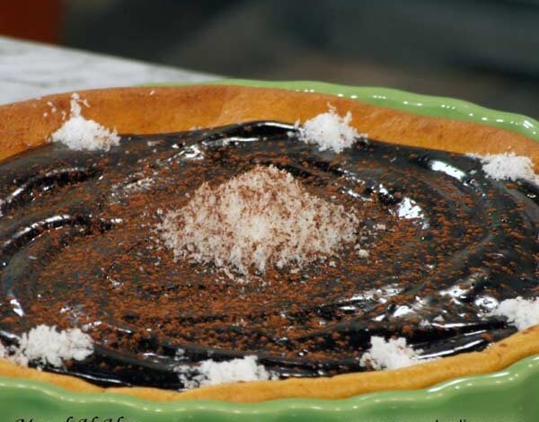 8 التغطية: في قدر متوسط الحجم ضعي القيمر والشوكولاتة. ضعي القدر على نار هادئة. باستعمال ملعقة خشبية قلبي الكريمة والشوكولاتة إلى أن تذوب الشوكولاتة وتتكون كريمة شوكولاتة ناعمة.