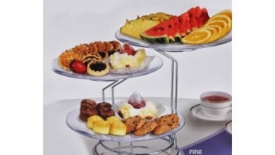 مجموعة مكونة من أربعة قطع : ثلاثة صحون , حامل الصحون دائرية الشكل , الحامل ذو قاعدة دائرية يحوي ثلاث…