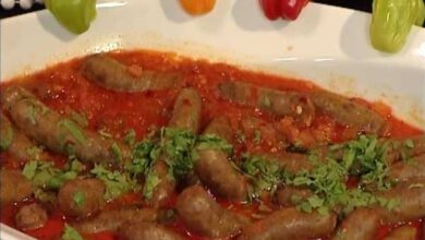مقادير الوصفة طريقة التحضير 1 باستعمال مقص المطبخ أو سكين حادة إقطعي حبات النقانق إلى نصفين. 2 في مقلاة واسعة…