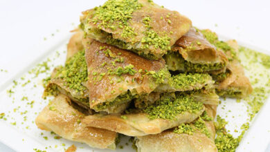 مقادير الوصفة طريقة التحضير 1في طبق عميق ضعي الكنافة.2وزعي السمن على الكنافة، قلبيها بخفة لتتشرب بالسمن.3احضري صواني مقاس ٦ بوصة…