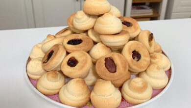 مقادير الوصفة طريقة التحضير 1ثبتي الرف الشبكي الأوسط في الفرن، سخني الفرن لدرجة حرارة ١٨٠ مئوية.2أحضري صواني قصيرة الحافة، ضعي…