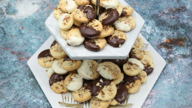 مقادير الوصفة طريقة التحضير 1ثبتي الرف الشبكي في وسط الفرن، سخني الفرن الى درجة حرارة 180م.2احضري صواني قصيرة الحافة. ضعي…