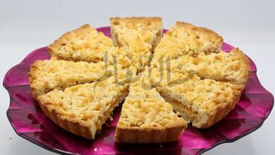 مقادير الوصفة طريقة التحضير 1 العجينة: في وعاء الخلاط ضعي الزبدة والسكر. ثبتي المضرب الشبكي. شغلي الخلاط على سرعة متوسطة…
