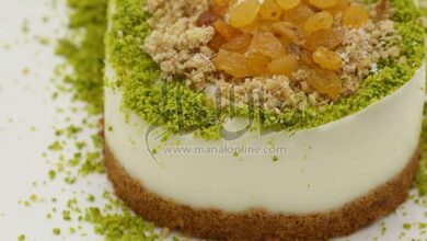 مقادير الوصفة طريقة التحضير 1أحضري قالب مربع مقاس ٩ بوصة. بطني بقطعة من النايلون مع ترك جزء خارج القالب لتغطية…