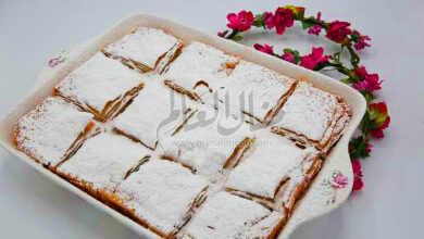 مقادير الوصفة طريقة التحضير 1 العجينة: في طبق عميق ضعي السميد، الدقيق، الزيت، الخميرة، الملح، القرفة، الهيل والماء. باستعمال ملعقة…