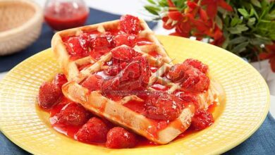 وافل بصلصة الفراولة