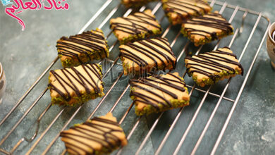 مقادير الوصفة طريقة التحضير 1 أحضري صينية قصيرة الحافة إتركيها جانبا.2 في طبق عميق ضعي البسكويت . السكر. المكسرات.العسل .…