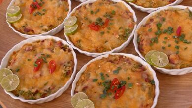 مقادير الوصفة طريقة التحضير 1 أحضري أطباق فرن فردية. ضعي في صينية فرن عالية الحافة. 2 في كوب صغير ضعي…