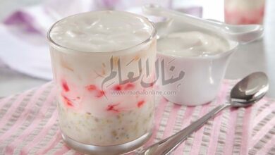 مقادير الوصفة طريقة التحضير 1 أحضري ٤ كاسات تقديم طويلة شفافة.2في قدر متوسط الحجم سميك القاعدة ضعي الحليب، السكر والنشا.…