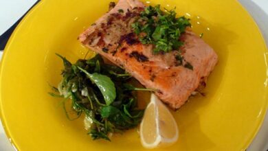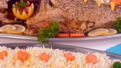 سمكة مشوية بحشو الثوم