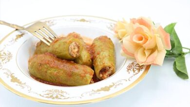 مقادير الوصفة طريقة التحضير 1 أغسلي الأرز وانقعيه بالماء ١٥ دقيقة. 2 الحشو: في طبق ضعي الأرز،اللحم، الزيت، الملح، الكمون،…