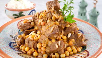 مقادير الوصفة طريقة التحضير 1في طبق عميق ضعي اللحم. أضيفي الملح، الزنجبيل، الكركم، الزعفران والفلفل. قلبي اللحم ليتغطى بالبهارات جيدا.2في…