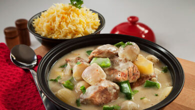 مقادير الوصفة طريقة التحضير 1في قدر عميق ضعي السمن واللحم، ضعي القدر على نار متوسطة وقلبي اللحم إلى أن يصبح…