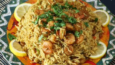 مقادير الوصفة طريقة التحضير 1 أغسلي الروبيان بالماء لتذويبه بعض الشيء، انثري عليه نصف كمية بهارات البرياني، اتركيه جانبا لبضع…