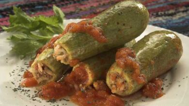 مقادير الوصفة طريقة التحضير 1اغسلي الأرز وانقعيه 15 دقيقة. افرغي الكوسى. 2في طبق ضعي الأرز، البصل، اللحم، الملح، الفلفل، البهار…