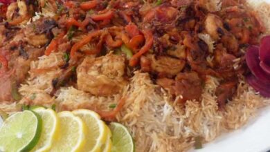 مقادير الوصفة طريقة التحضير 1 إغسلي الأرز عدة مرات ثم انقعيه لمدة ٣٠ دقيقة. 2 في قدر عميق ضعي كمية…