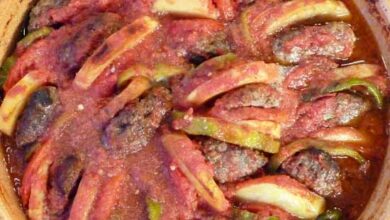مقادير الوصفة طريقة التحضير 1 ضعي قطع اللحم وريش اللحم في طبق زجاجي واسع. ضعي لحم الغنم المفروم في طبق…