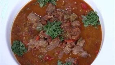 مقادير الوصفة طريقة التحضير 1 في قدر عميق ضعي الزيت، سخني على نار متوسطة، اضيفي اللحم، قلبي إلى أن يصبح…