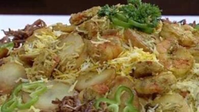 مقادير الوصفة طريقة التحضير 1 اغسلي الارز عدة مرات ثم انقعيه في ماء دافئ لمدة ١٥ دقيقة. 2 في محضرة…