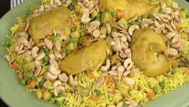 مقادير الوصفة طريقة التحضير 1 لسلق الدجاج: في قدر عميق ضعي الدجاج، ورق الغار، البصل، الكركم، الملح، الفلفل، الهيل، كبش…