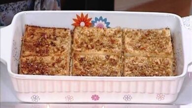 مقادير الوصفة طريقة التحضير 1 ثبتي الرف الشبكي في وسط الفرن. سخني الفرن إلى درجة حرارة ١٨٠م. 2 إحضري طبق…