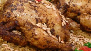 مقادير الوصفة طريقة التحضير 1اغسلي الدجاج جيدا، انزعي الجلد، إعملي عدة شقوق في اللحم بواسطة سكين حادة ليتشرب خليط التتبيل…
