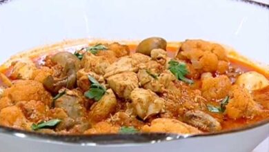 مقادير الوصفة طريقة التحضير 1 لسلق اللحم سخني الماء في قدر ثم اضيفي قطع اللحم، الغار، القرفة والبصل، دعيه يغلي…