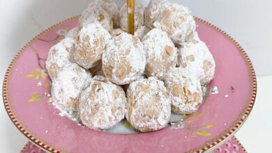 مقادير الوصفة طريقة التحضير 1ثبتي الرف الشبكي الأوسط في الفرن، سخني الفرن لدرجة حرارة ١٨٠مئوية.2أحضري صواني قصيرة الحافة، ضعي ورق…