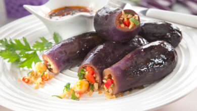 مقادير الوصفة طريقة التحضير 1باستعمال مقورة الخضروات فرغي الباذنجان من اللب. 2إغسلي البرغل عدة مرات ثم صفيه من الماء.3ضعي البرغل…
