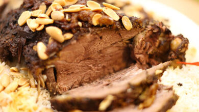 مقادير الوصفة طريقة التحضير 1 استعملي طرف السكين لعمل فتحات او فجوات في اللحم لوضع البهارات في داخلها وايضا للمساعدة…