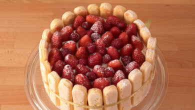 مقادير الوصفة طريقة التحضير 1 أحضري قالب رغيف أو طبق عالي الحافة بمقاس10*4. ضعي بداخله قطعة كبيرة من النايلون بحيث…