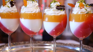 مقادير الوصفة طريقة التحضير 1 أحضري كاسات تقديم شفافة مناسبة لتقديم هذه المهلبية على شكل طبقات ملونة.2الطبقة الحمراء : في…
