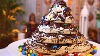 مقادير الوصفة طريقة التحضير 1ثبتي الرف الشبكي في الفرن ثم سخني الفرن على درجة 180، احضري 3 صواني مستديرة مقاس…