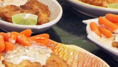 مقادير الوصفة طريقة التحضير 1 على قطعتين من ورق الزبدة أنثري قليل من الزيت البخاخ. ضعي قطعتين من فيليه الدجاج…