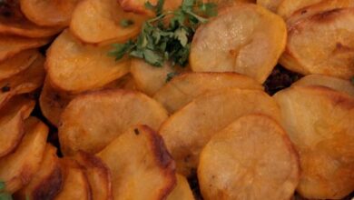 مقادير الوصفة طريقة التحضير 1 باستعمال أداة تقشير الخضروات قشري البطاطس. باستعمال سكين حادة قطعي البطاطس إلى شرائح رقيقة. 2…