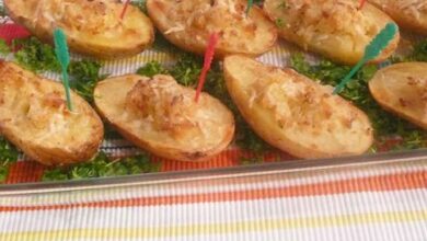 مقادير الوصفة طريقة التحضير 1 سخني الفرن على درجة حرارة 200 مْ ، احضري صينية شوي. 2 نظفي البطاطس من…