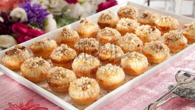 مقادير الوصفة طريقة التحضير 1 أحضري قوالب أكواب الكيك صغيرة الحجم (ميني كب كيك). ثبتي الرف الشبكي في وسط الفرن.…