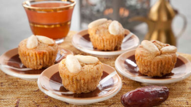 مقادير الوصفة طريقة التحضير 1ثبتي الرف الشبكي الأوسط في الفرن. سخني الفرن إلى درجة حرارة ١٨٠م. 2أحضري قالب أكواب كيك…
