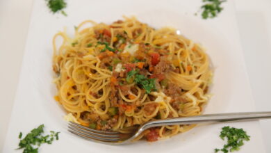مقادير الوصفة طريقة التحضير 1اسلقي المكرونة حسب التعليمات المذكورة على العبوة ، صفيها وضعيها جانبا.2الصلصة : في قدر متوسط الحجم…