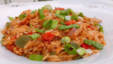 مقادير الوصفة طريقة التحضير 1في مقلاة واسعة عميقة سخني الزيت والزبدة.2اضيفي فيليه الدجاج وقلبيه ليصبح ذهبي اللون.3اضيفي البهار، البابريكا، الهيل،…