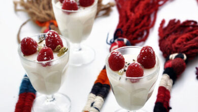 مقادير الوصفة طريقة التحضير 1أحضري كاسات تقديم او أطباق صغيرة الحجم.2اغسلي الأرز جيدا ثم اغمريه بالماء واتركيه ١٠ دقائق.3صفي الأرز،…