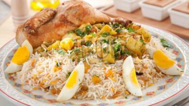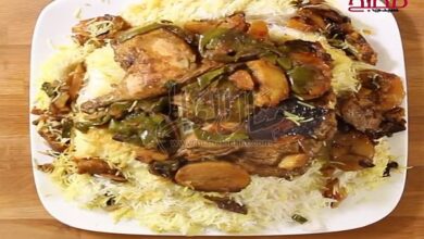 مقادير الوصفة طريقة التحضير 1 اغسلي الأرز وانقعيه بالماء 30 دقيقة. انقعي الزعفران في ماء الورد. اتركيه جانبا. 2 اقطعي…