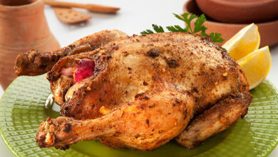 مقادير الوصفة طريقة التحضير 1في طبق واسع ضعي الدجاج. أنثري الملح، البهار، البابريكا والشطة. باستعمال ملعقة قلبي قطع الدجاج لتتغطى…