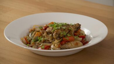 مقادير الوصفة طريقة التحضير 1سخني الفرن لدرجة حرارة 180، أحضري طبق فرن قصير الحافة.2 في وعاء عميق ضعي قطع الدجاج،…