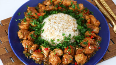 مقادير الوصفة طريقة التحضير 1في طبق عميق ضعي الدجاج والنشا. قلبي الدجاج ليتغطى بالنشا جيدا.2في مقلاة واسعة ضعي الزيت. ضعي…