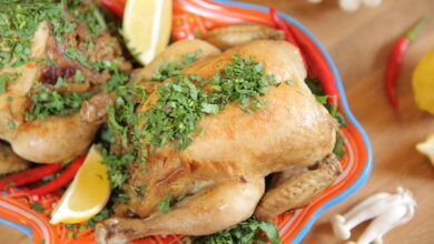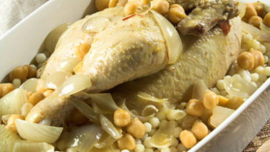 مقادير الوصفة طريقة التحضير 1 اغسلي الأرز، انقعيه بالماء المملح 15 دقيقة. 2 ضعي الدجاج في طبق، انثري عليه نصف…