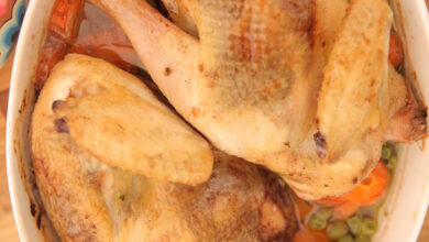 مقادير الوصفة طريقة التحضير 1سخني الفرن على درجة حرارة 200م. أحضري صينية قصيرة الحافة ضعي قطعة من ورق الزبدة.2. انزعي…