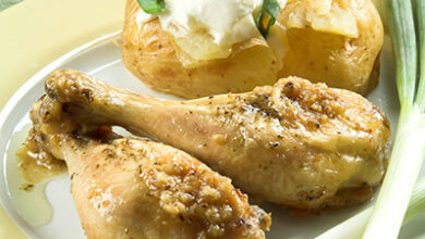 مقادير الوصفة طريقة التحضير 1 سخني الفرن 180، احضري طبق فرن متوسط الحجم. 2 في مقلاة ضعي الزبدة، الثوم والزنجبيل،…
