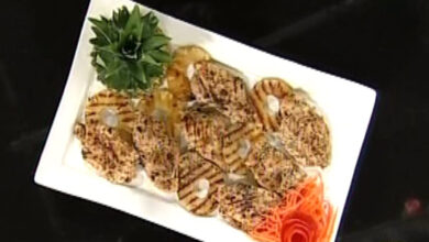 مقادير الوصفة طريقة التحضير 1 أخرجي شرائح الأناناس من العلبة ودعيها في مصفاة لتتخلص من السوائل. إحتفظي بقليل من الشراب…